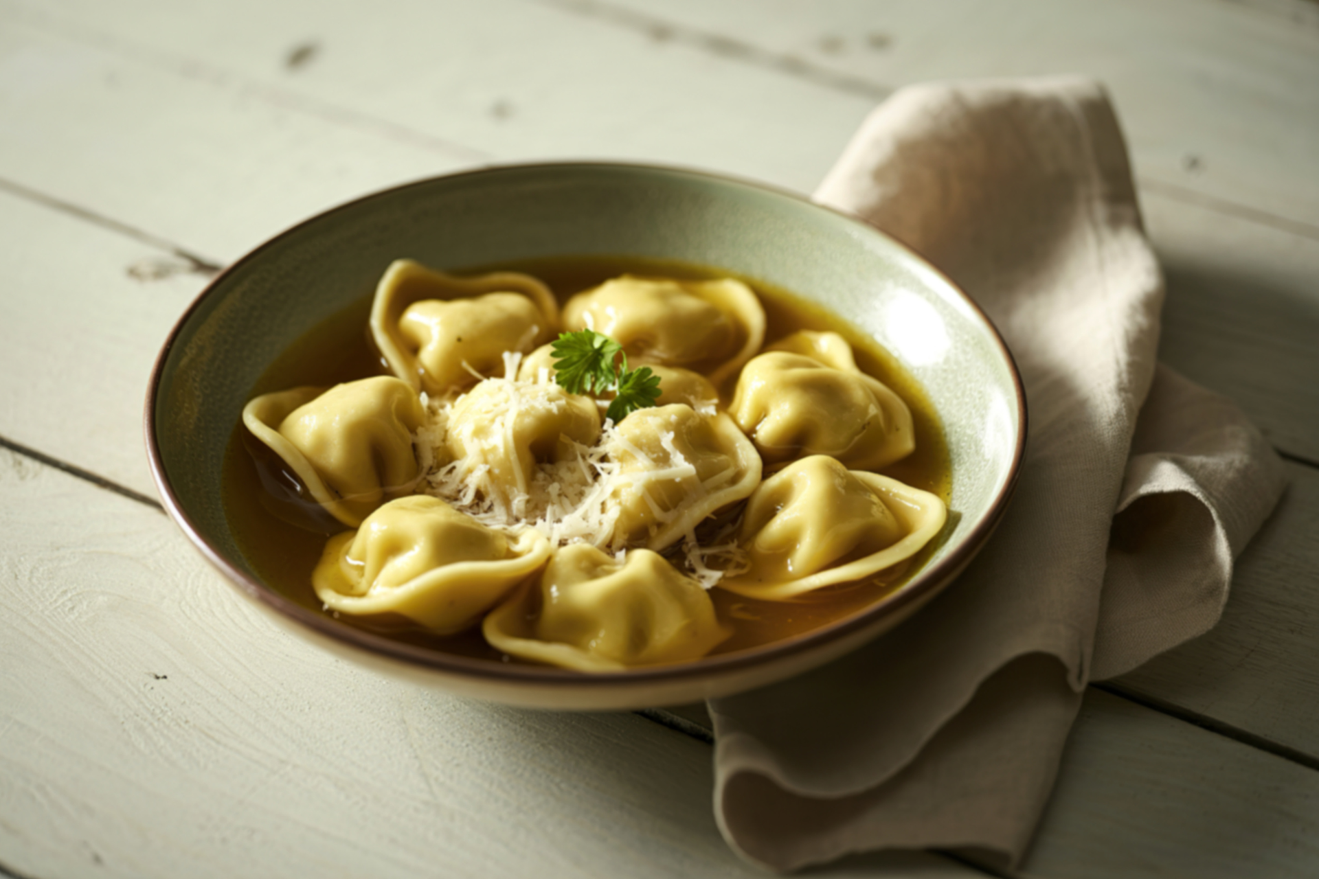 Il cuore del pranzo pasquale riminese è rappresentato dalla pasta fresca. I cappelletti in brodo sono il piatto più iconico delle feste, preparati con pazienza e spesso con largo anticipo, perché richiedono manualità ed esperienza.